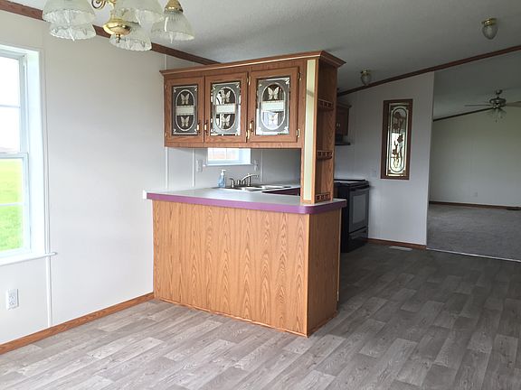 Spacious and move-in ready! This 3 bedroom, 2 bath doublewide has been well maintained and offers a new metal roof, fenced backyard, detached 2-car garage and large, covered, concrete front porch with beautiful views of the countryside. Inside you'll find a great open floor plan featuring a large living room and kitchen with lots of cabinets and spacious dining area. Just off the kitchen is a utility room/ mudroom with outside access. The owner's suite offers a private bath with separate tub ...