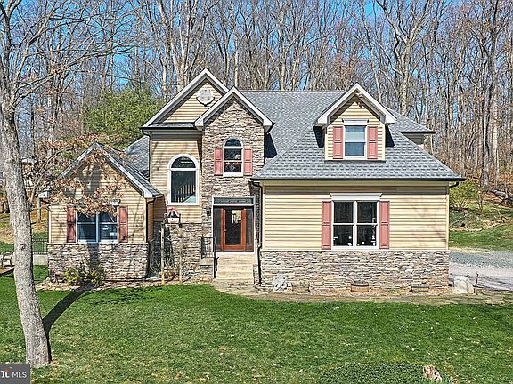 This beautifully renovated Craftsman Colonial offers over 4,500 square feet of open and inviting living space, seamlessly blending modern amenities with timeless charm, expansive indoor and outdoor entertaining areas, delightfully nestled on 3.33 acres of private land! Inside, large windows illuminate a welcoming foyer and two-story family room with stunning stone fireplace, creating a bright, inviting atmosphere perfect for relaxing or hosting guests. The custom kitchen features granite countertops, high-end appliances, and a spacious snack bar overlooking a sunny breakfast nook, den and sitting room areas opening to the awesome paver patio, fire pit area and pool deck for easy transitions outside. Opposite the great room, two bedrooms served by a full bath complete the first floor. The second floor reveals a loft area overlooking the great room, a fantastic primary retreat with generous walk-in closet, abundant natural light and custom bath boasting oversized walk-in tiled shower, double vanity, window seat and high-quality appointments. An additional second-floor bedroom presents a flexible space ideal for a nursery, professional office, fitness, hobbies and more. Downstairs, the full walk-out basement includes a huge recreation room and third full bath, plus ample storage area with option to add future living space if desired. Step outside to enjoy the peaceful wooded setting, which provides the perfect backdrop for your outdoor oasis, featuring a picturesque paver patio, fire pit, above-ground pool, picnic areas, and plenty of room to run, play and enjoy nature. Every detail has been carefully designed for the utmost comfort and style, meticulously renovated and maintained top to bottom, including a new, energy-efficient HVAC system, and new roof, so you can move right in with peace of mind, knowing your home is well-protected. Great serene and private location, but close to amenities, hospitals, and easy access to I-83, for a quick commute to Baltimore and York PA. Don’t miss this opportunity to own a little slice of heaven! Schedule your showing today!