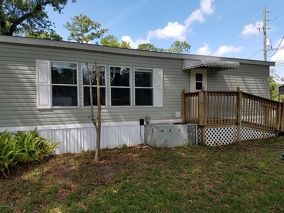 Extremely well maintained manufactured home with wood plank flooring throughout. Brand new kitchen appliances, vaulted ceilings with ceiling fans throughout. Home is wired for radio with speakers throughout. Brand new wooden deck. Close to St Johns Town Center with easy access to the beaches.