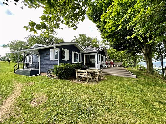 The home features a large open entryway that leads to a cozy living room complete with a wood-burning fireplace. Fully equipped kitchen & expansive heated sunroom, with its sliding doors opening to a Large Trex deck, offers breathtaking views of Seneca Lake. Hardwood floors run throughout the main living areas, adding to the home’s charm. Recent updates include a metal roof, luxury vinyl siding, furnace, and windows throughout, ensuring a worry-free living experience. The home also boasts 51 feet of lake frontage with your own private beach and the deep, spacious yard provides ample room for outdoor activities and gatherings along with 2 Sheds for storage. Nestled on the East shores of Seneca Lake, this property offers a peaceful escape with the convenience of being close to local amenities. Enjoy swimming, boating, fishing, or simply relaxing by the water’s edge. Offers due 7/3/24 at 4pm.