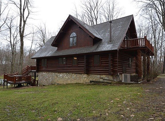 Want a hideaway? Montana Log Home in excellent condition. Large great room with view of the nice pond, two massive fireplaces, three levels of living area with a bedroom and bath on each level. Log garage with second floor guest suite. 60' x 64' building with interior finished for events, collections or storage. This building has 12' x 64' carports on each side. Small hunting cabin, beautiful pond all on 121 acres with road frontage on both Lamberton Road and Patchel Run Road near Cooperstown. 64 acres has OGM's to be transferred (3 gas wells with small royalties). Fantastic "ONE OF A KIND" property