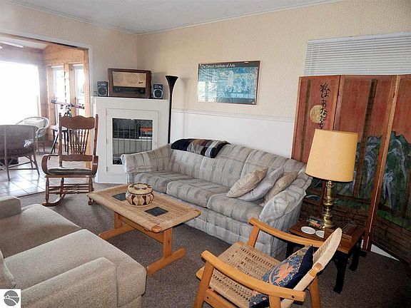 This property provides 1500 sq.ft. of year-round or seasonal living space with 50' of Lake Huron lake frontage. The shoreline features sandy beach frontage with pure sand lake bottom, with natural growth between the lake and the house An 8'x23' upper deck gives grand views of the lake. A 12'x16' lower deck provides ample space for outdoor grilling and enjoying the lakeside breezes. The main level has both dining and living room areas and a all season "sun room" with windows on three sides and lap cedar wall treatment. Two bedrooms and a full bath are on the main level while a circular staircase leads to an upper level with a third large bedroom with vaulted ceiling and sky light with a large open office area, art studio or possible fourth bedroom. This area also has a vaulted ceiling with skylight and plenty of glass giving a great elevated view of the lake. Seller's also are offering for sale the property next door which would together give a great compound with an additional two bedrooms and one bath with second kitchen and living area.