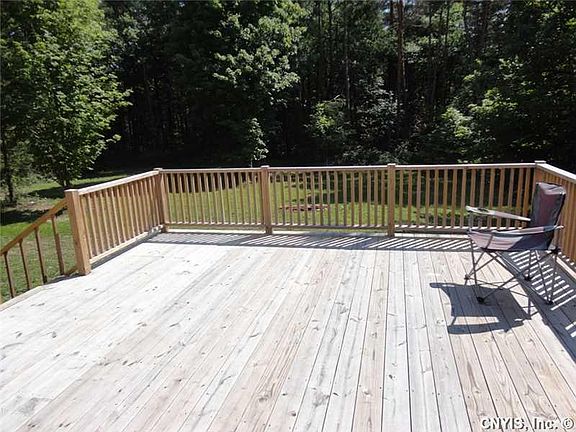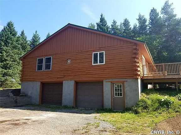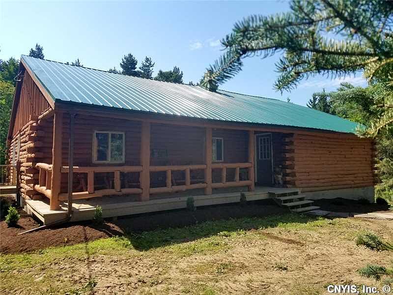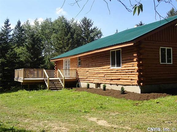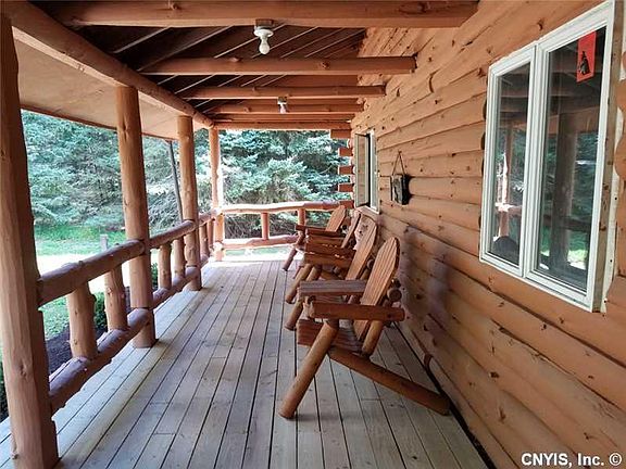 Scenic setting for log cabin featuring brand new walk way with front porch. Cathedral ceilings in the great room. There is a wood stove in the great room that could be connected. Brand new stainless steel appliances and cupboards in the kitchen. Brand new bathroom. Sliders to deck in the back overlooking private backyard. 3 bedrooms and one full bath. Attached two car garage with extra space in the walkout lower level. Move right in and live your life!