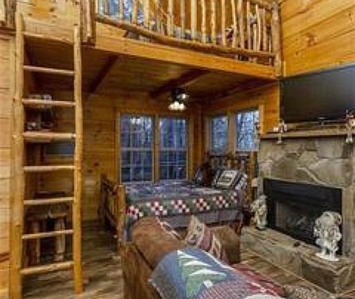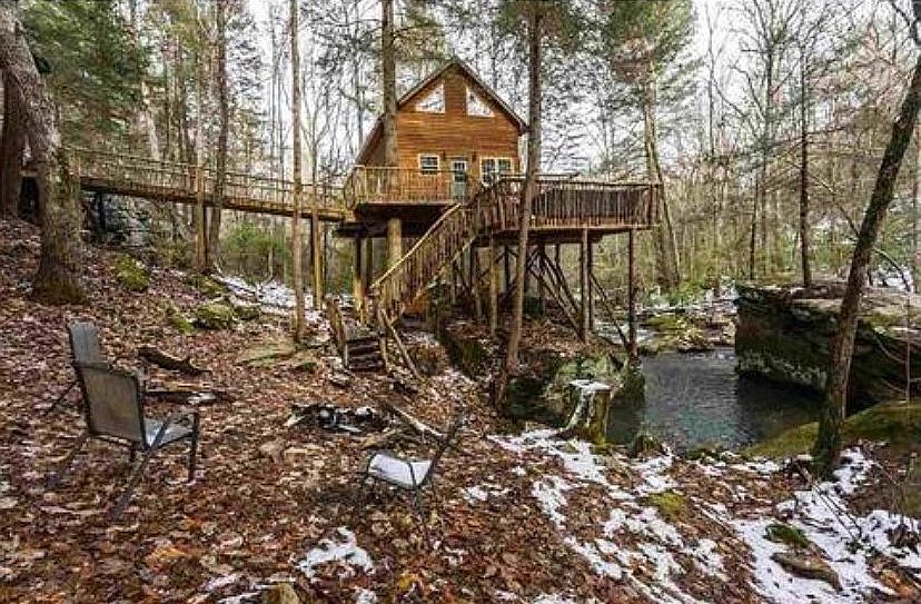 This is a very unique property. It is a treehouse, nestled 22 feet above the ground among the eastern hemlocks. It has a queen bed on the main level and 2 full-sized beds in the loft. Comes fully furnished with everything you see in the pictures and has a full kitchen and bath with stand-up shower. If you are looking for privacy with serene atmosphere you have found it. The treehouse is in need of repairs and price has been reduced to offset those costs.