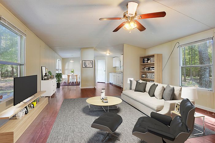 All new interior and appliances. You will love the beautiful wood floors and lovely modern features of this home. It features a large front porch and large shaded back yard. The proposed dog park and commons area are only steps away from your back door. Enjoy country living without the worry. The lawns and all the maintenance is taken care of so just relax and enjoy. Welcome home. This property allows self guided viewing without an appointment. Contact for details.