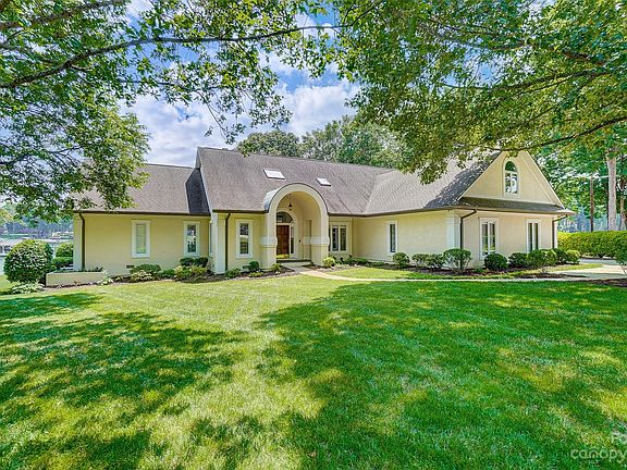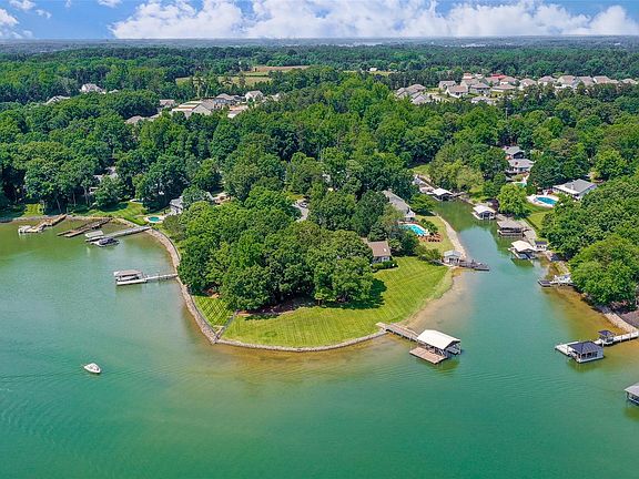 Experience waterfront luxury in this unique custom-built home sitting on a cul-de-sac flat nearly-acre lot graced with over~300 Ft of beach-like shoreline w/ incredible Views! This home has over 4000 sqft of living space, 4 BDRMS, 3.5 baths, & 3-car garage! The primary suite on the main level, offers an oasis of space w/ giant walk-in closet & bath! The open-concept design blends form & function, adorned w/ Oak hardwoods, custom built-ins, a fireplace, and a chic wet bar. The gourmet kitchen, recently updated, w/ granite counter, S/S appliances, seamlessly integrates w/ the surrounding spaces. The 2nd floor, reached via two staircases, resides 3 BDRMS, two full baths, an office, & huge bonus room! The property offers a unique opportunity to finish an additional 750+ sqft of space! The back deck runs the entire length of the home, perfect for outdoor entertainment w/ a picturesque backdrop of the flat lot meeting the lake. A covered boat dock & full irrigation system is present! No HOA!