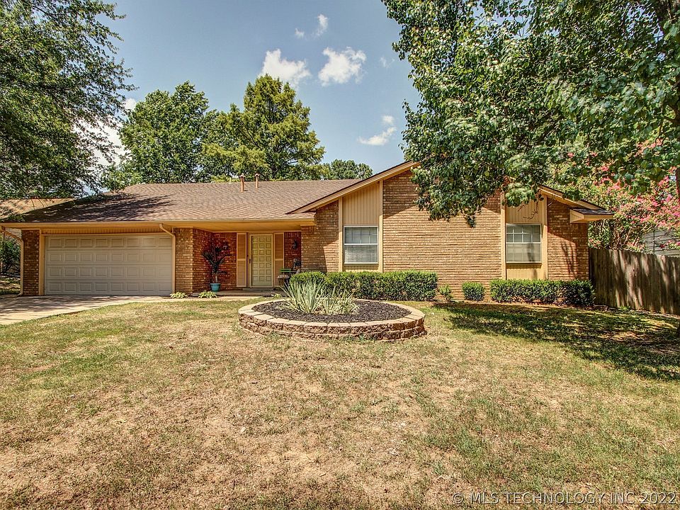 Centrally located, neighborhood pool/park! Full brick Ranch style home w/beautiful laminate wood floors through out. Vaulted great room w/cozy corner white brick fireplace floor to ceiling. Open to formal dining, enclosed wet bar great for entertaining! Kitchen w/some newer appliances, neutral counters, white cabinets, eat-in. Lg utility w/desk. Four good size bedrooms with walk-in closets. Master with private bath. Private backyard with lovely stone terrace, full privacy fence. Newer HVAC-2015 & 2018.