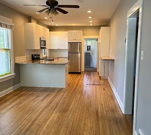 Beautiful historic brick bungalow in the highly sought-after Highlands neighborhood. This large 2,100 square foot home features 5 bedrooms and 2 full bathrooms. The main floor consists of a family room with a fireplace, open kitchen with stainless steel appliances and granite countertops, 3 bedrooms and 1 full bathroom. The light and bright open basement has a laundry room, full bathroom, family area, and 2 bedrooms. There is a non-attached one car garage and 2 off-street parking spaces in the ally. The exterior boasts a beautiful backyard with a sprinkler system front and back. The home has high efficiency heating and air conditioning systems. The home is in walking distance from the popular Highlands shopping area with plenty of restaurants and boutiques. Renter is responsible for all utilities.
