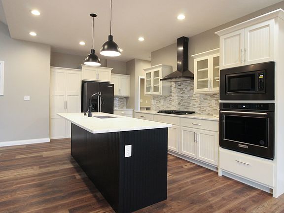 New home by award-winning Spoon Construction. Craftsman exterior. Open floorplan features gourmet kitchen w/custom cabinets, quartz c-tops, black appliances, island w/bar, "secret" walk-in pantry. Main floor home office. Awesome main floor master suite w/tile shower, dbl bowl quartz vanities, custom tub surround & large walk-in closet. Family room w/vaulted ceilings, gas log fireplace w/ custom mantle, built-in shelving & lots of windows. Wifi thermostat, MUD/laundry w/sink , & large covered deck w/ adjoining uncovered deck. Finished 3 car garage w/keyless entry. Finished Walk-out Bsmt w/ office, large rec, game room, bedroom, & bath.