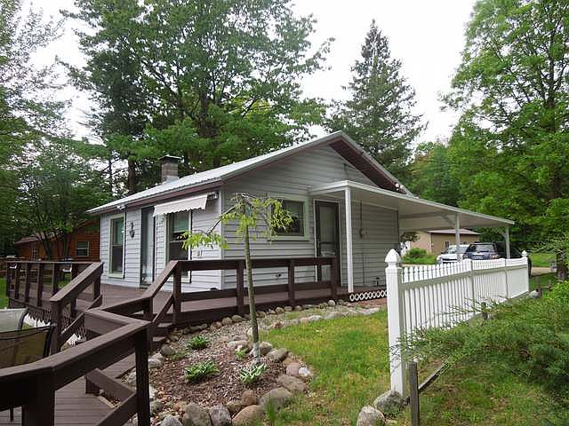 Come take a look at this adorable small cottage/home on all sports Wixom Lake. It has so many updates you'll be able to move right in. It just had a new metal roof on and a new carport,new driveway,and decking. In the past few years the windows in the living room and kitchen,and new flooring. beautiful views of the lake, on the newer decks ,and steel seawall in 2012 with dock, plus a 8x12 shed on a concrete slab. Come take a look!! Room to add on if you need more space. So cute and clean you wont be disappointed! Sandy swimming!