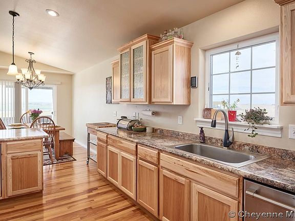 You'll get mountain views for miles from the spacious covered patio. This 3 bedroom home has been meticulously maintained and offers an open layout with huge kitchen featuring hickory cabinets and hardwood floors. Spacious master suite has a walk-in closet and 5 pc bath. Unfinished walkout basement is great for storage or future room to grow. 2 car oversized garage. Great spot for a large outbuilding one day as well.