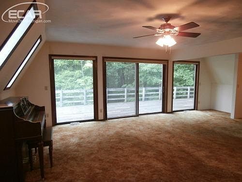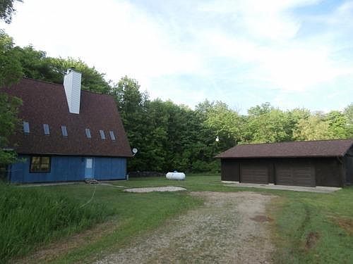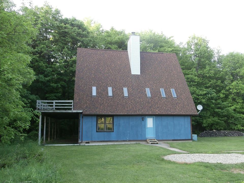 On 20 ACRES! A-Frame home sits back from the road with woods surrounding it and a very private setting with 2.5 car detached garage. Four bedrooms, 2.5 baths with above grade walkout lower level. Mid level hosts great room with 4 skylights, fireplace, island kitchen, and sliders to deck! Lower level is finished with drywall but there is no floor covering. Wonderful hunting property, lots of wildlife!