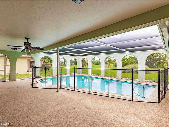 Discover serenity in this exquisite pool home nestled in SE Cape Coral, overlooking the picturesque former Cape Coral golf course with expansive views of the open land. Situated on a spacious lot, this home offers unparalleled tranquility and privacy.