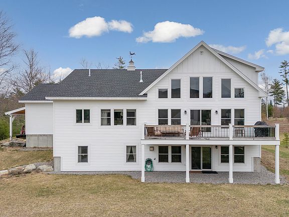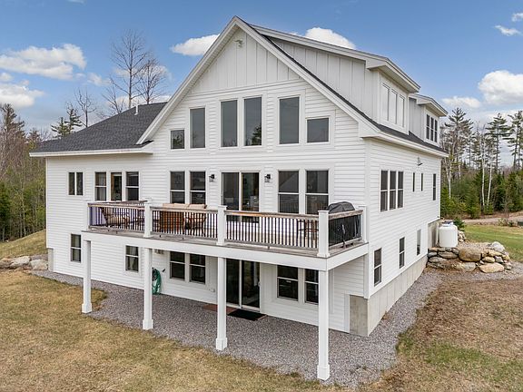 Privacy, luxury, quality, location and views—all these elements converge in this recently constructed estate nestled on 5 idyllic acres enveloped by conservation land, seamlessly linked to snowmobile and cross-country trails and teeming with wildlife. Situated between the quaint Bethel village and the renowned slopes of Sunday River Resort, this home draws inspiration from modern farmhouse aesthetics and serves as the ultimate hub for year-round mountain adventures. Boasting over 2100 square feet above grade and over 1600 square feet below grade, there is plenty of space to spread out and enjoy. Step outdoors to explore a low-maintenance landscape featuring a private tennis court, also designated for pickleball, an expansive deck, paved driveway, and an attached 3-car heated garage. Indoors, an airy open-concept main level beckons with a gourmet kitchen, complete with a butler's pantry, a private office/den, a cozy great room adorned with a gas fireplace and soaring cathedral ceilings, a convenient laundry and mudroom, and a secluded primary suite. Descend to find three additional bedrooms, a shared bath, a spacious living area, and effortless access to outside through walkout doors. Ascend to the upper level to discover a second primary suite, complete with its own private sitting area, bath and closet space. Conveying furnished, this property is ready to move in an enjoy all that the mountains of Maine have to offer.