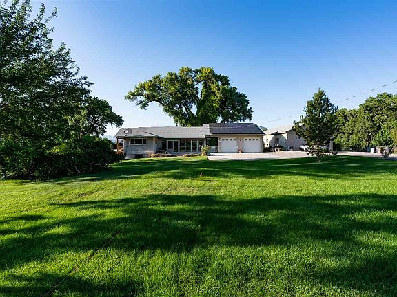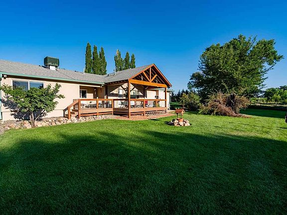 Beautiful remodeled farm house on close to 15 acres on east orchard mesa. Irrigation includes unique 5-acres unlimited water. 1/2 acre pond for additional water and fishing. Ranch style home w/basement and attached 2-car garage. 3 bedroom and 4 bathrooms, all newly remodeled. Large metal out-building houses a Fully operational winery/vineyard. Large 2 car tandem garage and shop. Newly built stucco garage for farm equipment (included) and metal shed. 14.01 acres adjacent to the Colorado River. Excellent unobstructed views of Mount Garfield and the Grand Mesa make this a one-of-a-kind property. Agriculture includes; 3 acres of wine grapes (Syrah and Can Franc) and 5 acres of alfalfa/grass. Tractor, wine making equipment and furniture included (details). Solar panels supply all electrical needs. Panels are owned not leased. Electric gate guards property entrance!