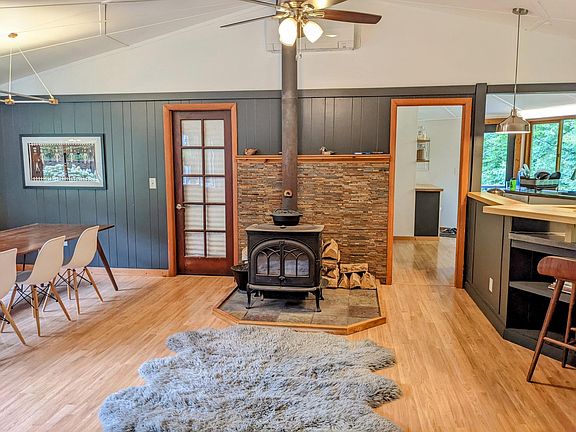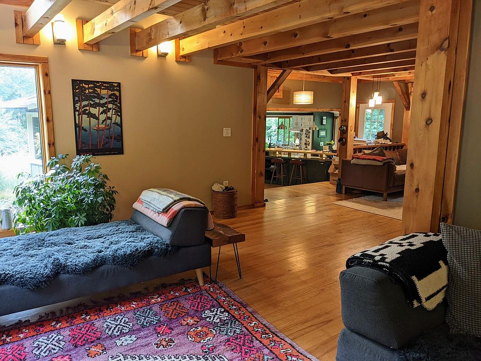 Spacious fully furnished 3-bedroom, 2-bath house in Brooktondale, NY available for rent January to May 2023 (with some flexibility). The house is located on 8.5 acres and is adjacent to 5000+ acre Shindagin Hollow State Forest which is perfect for hiking, running, snowshoeing, mountain biking, etc. The house has an open layout and gets great natural light. There are 2 bedrooms, 1 full bath on the first floor and 1 bedroom, 1 full bath + lofted office on the second floor. Laundry and gym in the basement. Perfect winter retreat for a couple looking for a quiet, modern cabin in the woods with space for guests and close to outdoor activities. A 4-wheel drive vehicle is recommended and knowledge of how to use a woodstove is ideal. Rent includes heat, electricity, water, internet, snowplowing. Absolutely no smoking on the property. Well behaved dogs considered with pet fee and references.