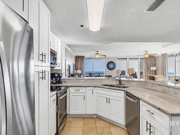Welcome to your dream retreat! This exquisite west corner, top floor unit offers 4 bedrooms, each with its own en-suite bathroom for ultimate privacy and comfort. The updated kitchen boasts stunning White Granite countertops, sleek stainless steel appliances, and plenty of bar space, perfect for entertaining guests. With the flip of a switch, hurricane shutters are in place for added peace of mind. Enjoy breathtaking views of the Gulf of Mexico and indulge in resort-style amenities that include 5 outdoor pools, indoor pool, hot tubs, pickle ball, tennis, volleyball, Full Spa, Fitness Center, Game Room, Award Winning Fine dining restaurant and more! Enjoy uninterrupted sunsets and panoramic views of the Gulf from your expansive Wrap-Around private balcony. West corner units also offer an Exclusive Secondary Balcony that offers spectacular views of Mobile and Bon Secour Bays. This exceptional condo offers a unique blend of luxury, comfort, and recreational opportunities. Schedule your private tour and discover the ultimate in Gulf Coast living! Buyer to verify all information during due diligence.