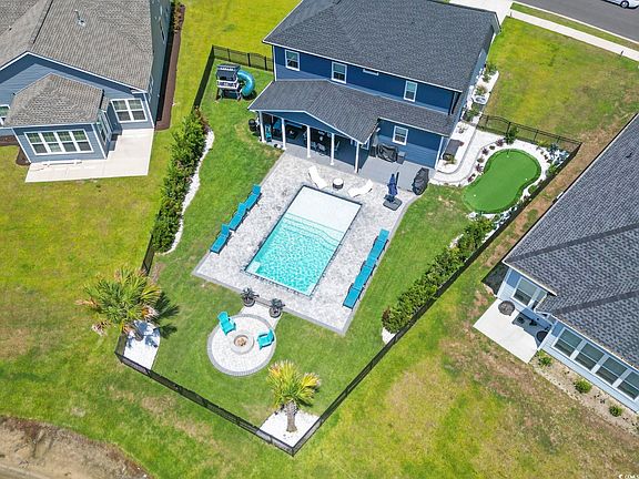 This immaculate 2 story 5 bedroom 3 full bathroom home was designed for quintessential indoor/outdoor living in which every level connects to the serenity of the water views and southern sunshine. Every detail and upgrade was considered for style and comfort at the finest level optimizing opulence in your own personal retreat. Welcome to Wren Bay a Luxury Community in Murrells Inlet. Here you will find one of the rare opportunities to own a turn key upscale and modern home with its own private in-ground Pool, Putting green, Sauna,& Play ground. Once inside you will find soft white and grey tones & chic recessed lighting, complemented by natural light that pours into the main floors expansive living space. The 1st floor hosts a Large King-sized bedroom with a walk in closet and is attached to the main floors fully tiled shower bathroom. Designed as a Guest suite this could make a beautiful office. Sandy vinyl plank flooring /level 3 carpet , white quartz , & royal azure cabinetry are in unison throughout the entire home. A ship lapped 72" electric fireplace sits center attention in this open concept modern living room dining room combo. You will see stunning water views of both the pool deck & the lake as you continue into the gourmet chefs kitchen of your dreams. Highlights include a 35" apron front single basin enameled cast iron farmhouse sink, a pot filler and vented hood range over a natural gas 5 burner cook top, an oversized working island & 2 pantry's. Stainless steel appliances, an abundance of cabinetry, and counter space boasts the perfect setting for entertaining!! Through the kitchen you'll find the perfect drop zone and garage access to unload the grocery's. The 2 car fully finished garage showcases epoxy flooring, white walls, a utility sink and your own private Sauna !! Up the split level staircase you will continue upstairs to find a second living room that could very well convert into an additional bedroom. The front facing bedroom offers multiple windows and a walk in closet. Another full bathroom features a tub & double vanity's, located across the hall from a full sized laundry room. The "wildones play room" is something you don't see every day. The state of the art design features a hand painted cheetah accent wall,swings,and its very own rock wall climbing gym!! The phenomenal master suite has an impressive 9 foot double vanity, a stunning tiled / natural rock shower with a deluxe duel rain fall shower head, multiple closets including a grandeur 12 x 6.5 foot dream wardrobe. Imagine quiet morning sunrises or bright South Carolina sunsets counting your blessings and gazing up to the stars over awe inspiring views peeringover the outdoors. Where you'll find the prime entertaining experience; The oversized covered porch shades an expansive dining area overlooking your oasis. Enjoy with friends & family or take in the serenity of the lakes wildlife by dropping in a fishing line or practicing your putting game on your very own private 20ft 3 hole turf putting green. Bask in the sun on your 8ft platform gazing over the St John hues of your 14x27ft salt water pool lavishly flocked with stone pavers. Enjoy quiet nights by the fire pit listening to the frogs or watching the swans & the children playing on the play ground. As if the home and property weren't enough the community is like nothing you have ever experienced. Immerse yourself in a one of a kind neighborhood that has an amazing social life together. Neighbors that become family and cant get enough of each others company. Driveway get togethers, a yearly Christmas crawl, brunch groups , water aerobics,Inlet outings, & a multitude of events; it is simply something to surround yourself in a real life story book village. Located just 4 miles from Garden city beach and all the freshest seafood and fun Murrells Inlet has to offer. Schedule a tour to experience this rare and special opportunity Owner is a Licensed Real Estate Agent.