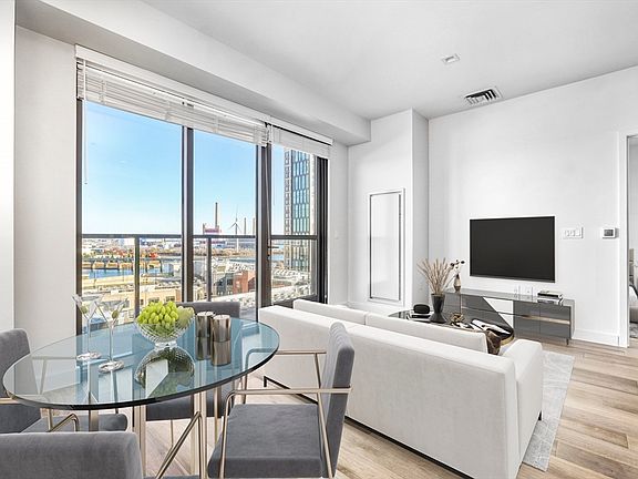 Take in the views from Residence 1009 located in the highly desirable Alloy building at Assembly Row. This 1 bedroom plus den lives as a 2 bedroom. Enjoy this beautiful brightly lit unit with a large windows, private deck and unobstructed views of the Mystic river. Open floor plan with hardwood floors throughout, gas cooking, quartz countertops, and stainless steel appliances. Spacious bedrooms with ample closet space and overside bath with floating dual vanity and stunning tile. This is a full service building with concierge, owner's club room with a kitchen, dining areas, media room, all leading out to the roof deck complete with gas grill and fire pit. Full access to the hotel pool and fitness center in the same building. The Orange line is just steps away and a short ride to downtown Boston. Area amenities are endless with retail shops, dining, a movie theatre, park, running trails right outside your door. Units in this building dont come up often, so don't wait!