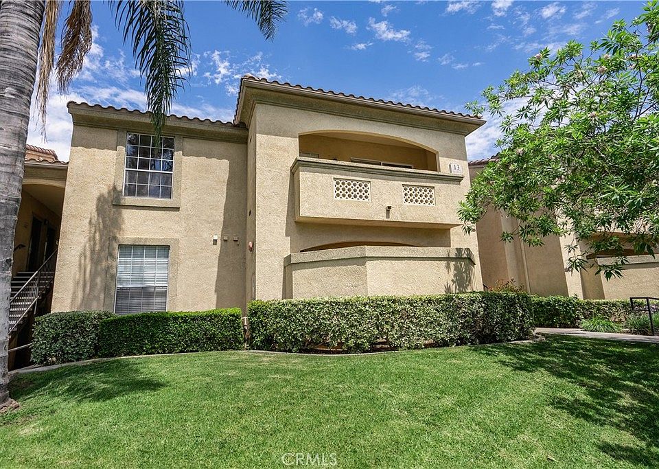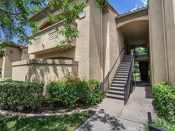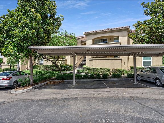 SONATA AT CANYON CREST - Updated condo in the gated Sonata community. This upstairs unit is turnkey and located in an ideal part of the complex, with private covered balcony and convenient access to community amenities. The kitchen features solid surface countertops, refrigerator, and stove. In-unit laundry closet includes stacking washer/dryer. Updated laminate flooring throughout, with high ceilings and central air. The unit includes one covered carport parking space and ample guest parking. The complex offers a community pool, spa, exercise room, and more. Located near UC Riverside, Canyon Crest Towne Center, Sycamore Canyon Wilderness Park, and freeways.