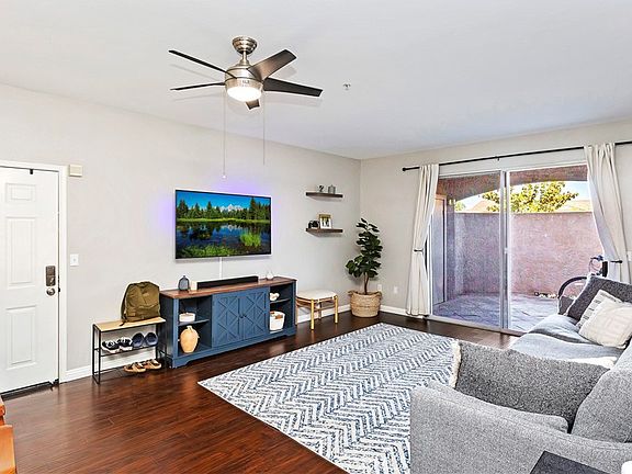 Welcome to the Sonata at Canyon Crest! This complex is located in a quiet neighborhood with quick access to all major Inland Empire freeways. This 2 bedroom/2 bathroom condo features hardwood floors upon entering the large living room and throughout the home and custom tile flooring in the kitchen with high baseboards throughout. The kitchen features stainless appliances, a farmhouse sink, quartz countertops and custom subway tile backsplash giving it a very modern, clean look. The laundry room is off the kitchen out of the way. Off the kitchen, you will find the dining room. Each of the rooms in the condo have ceiling fans keeping the home cool throughout the year. The guest bath has granite counters, an upgraded faucet and custom fixtures. The large guest room has a walk-in, vanity mirrored closet. Make your way into the master suite and find a huge room with en-suite that has granite counters, an upgraded faucet and updated fixtures. The bathroom is separate for privacy. The Sonata complex has plenty of amenities including but not limited to a swimming pool and spa, BBQ area, a workout Gym, a clubhouse and private tennis courts. This community is walking distance to the Canyon Crest Towne Center, The Canyon Crest Country Club and UC Riverside. Close to all local schools, churches and shopping. Do not miss this gem of a Condo!