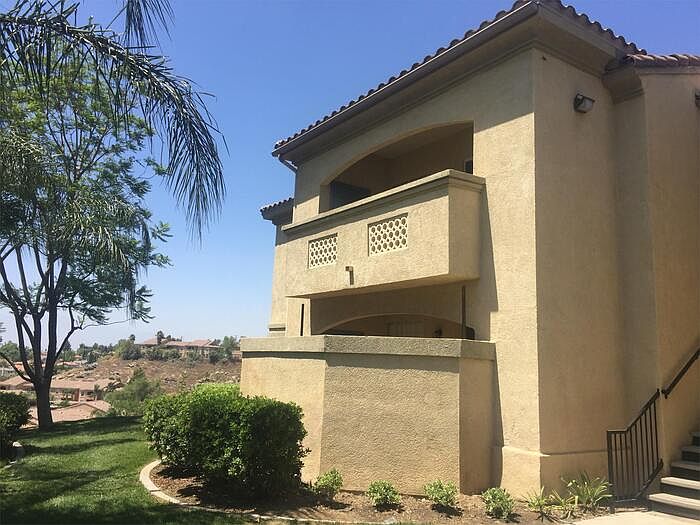 Upscale Sonata END UNIT available NOW! Beautiful views of the arroyo from the covered patio and bedroom of this UPSTAIRS UNIT. This 1-bedroom, 1-bathroom condo is tucked into the edge of the community, bordering the open desert and ready for your enjoyment now. Granite kitchen with stainless steel refrigerator, washer and dryer (in unit), and tons of storage and built-in bookcases. Bedroom is open and bright with ample-sized bathroom as well. Brand-new upgraded carpet and paint. The amenities in the community are outstanding! Offers awesome clubhouse with fitness center, swimming pool, theater/game area and tennis courts! Very close to UCR campus, Canyon Crest Towne Centre for shopping, and Canyon Crest Country Club Golf Course. Easy access to the 60/215 and 91 freeways; Washer & dryer; Microwave; Stove; Dishwasher; Upstairs unit for more privacy; Private patio and storage; Walk-in closet; Granite countertops in kitchen and bath; Tile and; NEW carpeting; Custom paint; Quiet location near greenbelt; Awesome views of arroyo and mountains; Covered parking reserved; Community Clubhouse; Community Pool/Spa; Gated Community; Convenient UCRiverside location; Close to freeways and shopping; Sycamore Canyon Park across street; Built 1997. Copy this link to your browser to schedule a showing at your convenience. Contact for details.