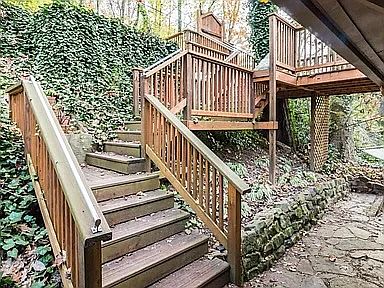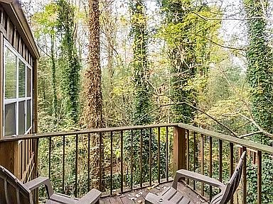 This furnished house on 2 floors is within 5 blocks walking distance to the Emory Law school and public transport. It comes with 2 off-street parking spaces. Hardwood floors and washer and dryer are included in a full kitchen with a solid glass wall overlooking an audible creek. Decks all around allow enjoyment of this quiet and beautiful setting. The house is a haven very close to city center yet in a country-like setting. Video walk though available upon request. Utilities are shared with apartment in rear and divided evenly. There are 2 off-street parking spaces and additional street parking. Renewable leases run 1 year.