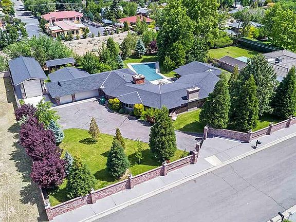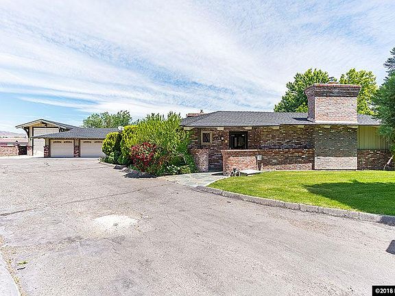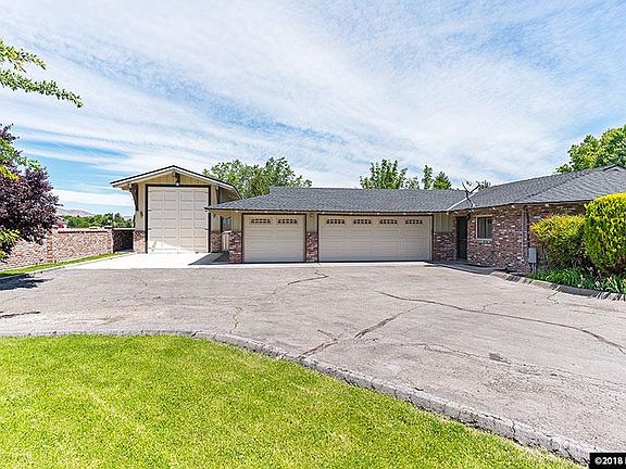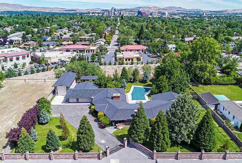 Private estate in the esteemed Southwest of Reno. This Craftsman style home is nestled within towering pine trees, fruit trees and rosebushes, and secured by an automatic gate and an illuminated brick wall that encompasses the entire lot. There is a 3 car attached garage and a fully finished 1,142 sqft detached RV garage with exposed wood beams. The interior is highlighted by the natural materials of wood, stone and brick along with custom built-ins intertwined into the architecture.