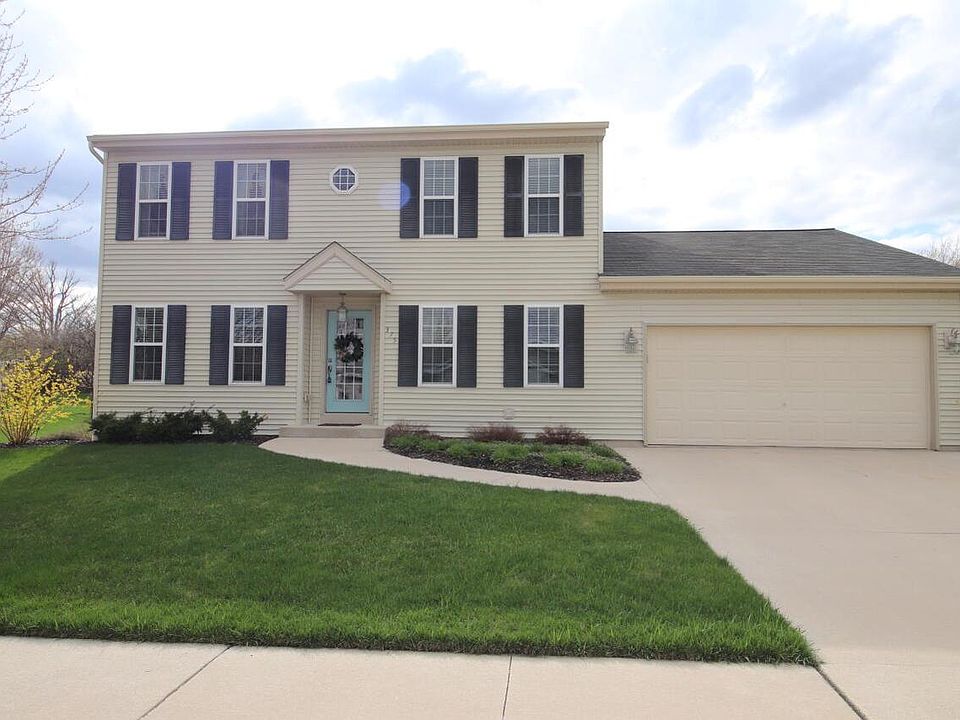 Impressive 2-Story Picture Book 2004 FAMILY HOME! This 2,198 SF 4 BR, 2.5 bath home is in sought after Rockville Sub. Country-sized kitchen, island snack bar, pantry. Hdw floor-kitchen/dinette. Distinctive great room--enjoy the warmth of the gas FP when friends drop in! Formal DR or office/den. Master BR suite--bring your king-sized bed. Master bath, shower stall. All BR closets are WALK-IN! 1st floor ldry. 6 panel doors, central vac. Lower level FR + office/craft room. Say goodbye to city cramps on this private .34 acre partially fenced lot for family fun! Brick patio. 2-car DEEP garage(20.5x32). Short stroll to parks, walking trails, baseball diamonds & dog park. EXPECT TO BE IMPRESSED! SPARKLING CLEAN home by Miracle Homes--IT IS A DREAM COME TRUE!