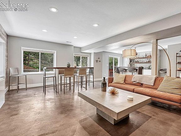 Tucked away on a quiet cul-de-sac in the highly desirable Pinecliff neighborhood, this beauty has been totally renovated and upgraded – including full renovations to all four bathrooms and entire basement level, doors and hardware, lighting and ceiling fans, window shades, stair railings, kitchen hardware/backsplash, family room accent wall, and landscaping! * Real hardwood floors * Vaulted ceilings on entry * Formal dining * Kitchen with granite, glass block and stone backsplash, informal dining, desk, and stainless steel; connects to uber-cool stone-walled family room with wood mantel and fireplace * Five piece primary suite with barn doors and great finishes * Walkout lower level is perfectly appointed for entertaining with modern accents and chic bar, plus dedicated workout room/bedroom * Relax in the serenity of the fully fenced, dog-friendly backyard (w/doggy door) with composite deck with new handrail, new concrete patio, hot tub and nature galore * Highly regarded D20 school district * Walk to Ute Valley Park trails * Minutes from UCCS, University Village, hospital, schools and I25 *