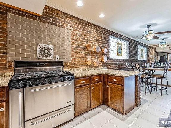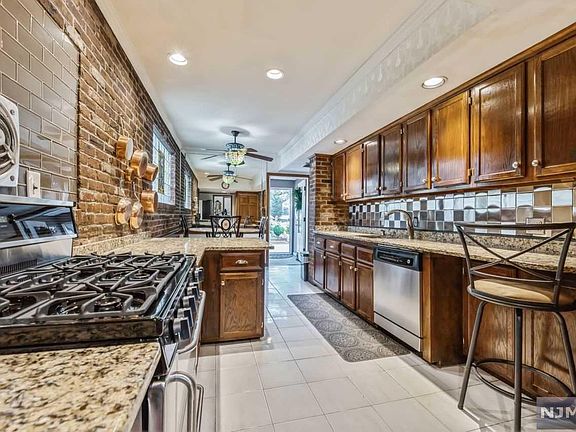 This elegant single-family home is located in salt after Athenia section of Clifton walking distance to Clifton Senior high school and New York City train this beautiful side hall. Colonial is the perfect mix of timeless, charm and modern amenities. As you approach the front door, you are greeted by a beautiful brick front porch with built in brick planter. Upon entering, you are warmly welcome by a bright, open floor plan. Meticulous attention to detail is present in the kitchen with white tile floor, warm brick accent, dark wood cabinets, and quartz countertops, as well as stainless steel appliances that complete this beautiful kitchen. adjacent to the kitchen is the room with 12 foot ceilings and floor ceiling built in bookshelves. The sun filled great room looks out upon the deep, private backyard with enormous patio perfect for entertaining.