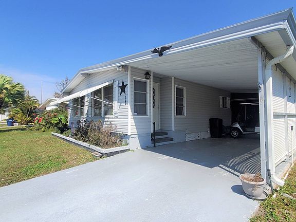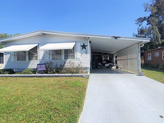 Just Reduced $58,000- MOTIVATED SELLER Bring your furniture and belongings and start living the Florida Dream. A clean slate to create your own oasis. This property features two bedroom and two bathrooms with 1,152 sq ft of indoor living space, not including the front Florida room. Stepping inside you will appreciate the expansive and well laid out floor plan. The front Florida room could be used as a second family room, office, game room, bar, or a in home library. The options are endless with this large space. The dinning room and living area are open and wonderful for entertaining. The living room provides plenty of living and lounging space. The galley kitchen is fully equipped with all your major appliances. Plenty of cabinet and counterspace with a large pantry for extra storage. The flooring has been redone in 3/4 inch plywood and laminate. NEW vapor barrier in 2021. The AC and ductwork are also NEW in June, 2022. Main bathroom has a tub/shower combo with a sliding glass door. Spacious guest bedroom with a large wall closet. This room could easily accommodate a queen-sized bedroom set. The primary bedroom is very large with a walk-in closet and a linen closet. The bedroom also has an updated ensuite bathroom with a with a step-in shower. The outside features a side driveway and carport that accommodates two cars tandem. There is also a side enclosed lanai and a large storage shed that hosts the washer and dryer. The shed has plenty of room for your overflow storage. Great location and minutes away from virtually everything. Call today to schedule a tour. Colony Cove is an age qualified (55+) five-star resort community of manufactured / mobile homes. The "Cove" boasts 5 clubhouses, 6 heated pools, a riverfront pavilion and private fishing pier, a private marina, a fenced dog park (very pet friendly), tennis, shuffleboard, new pickleball courts, 2 new fitness rooms, 24-hour patrol, clubs for every interest, and much more. There are daily planned activities throughout the park. Bottom line, if you get bored here, it's your own fault!! The lot rent in Colony Cove is based on the homes' location. While the monthly rent may not be the lowest around, it's by far the best value for the money. Not only does the monthly rent cover all of the amenities of the community listed above, it also covers almost all other monthly expenses such as; water, sewer, trash pickup, all property taxes, lawn maintenance. . .pretty much every monthly expense except electricity and internet. The current lot rent on this home is estimated at $1,001.23 per month. All listing information given to us is considered appropriate and reliable but always recommend Home Inspections by independent companies who have a background and thorough understanding of manufactured homes. We cannot guarantee the accuracy of information given to us or the condition of the home. Lot rents are determined by the community office not our company.