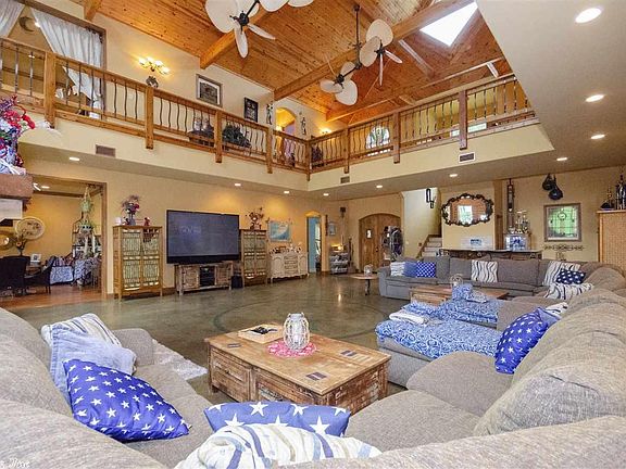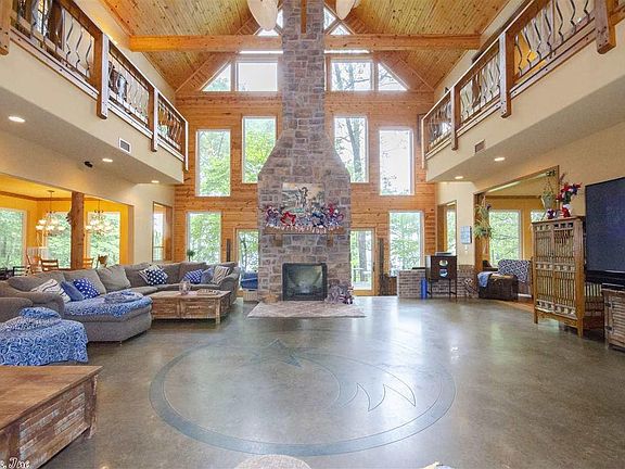 Stunning lake house retreat situated on 3 lakefront lots overlooking the smoothest water on Greers Ferry Lake. A 40' solid rock fireplace is the centerpiece of the open living area. Above are virgin pine wood plank ceilings. Brazilian blue granite in the open kitchen along with Thermador appliances. Built-in bar with antique hickory cabinets. Huge owner's suite overlooking lake with custom rock shower. Perfect for an executive retreat, wedding/event venue, nightly rental income, or personal lake home.