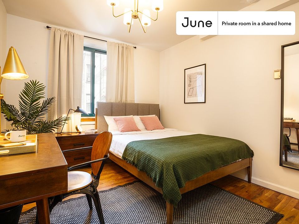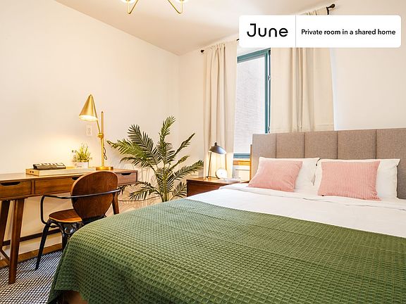 This Queen room in East Village is available on a 12 month lease or a flexible short term (31 to 364 days) lease. You pick your custom start and end date. Monthly rent rate is determined by furnishing preference, move-in date and move-out date. Speak to a June representative for recommendations on the best stay duration for the lowest rate.
