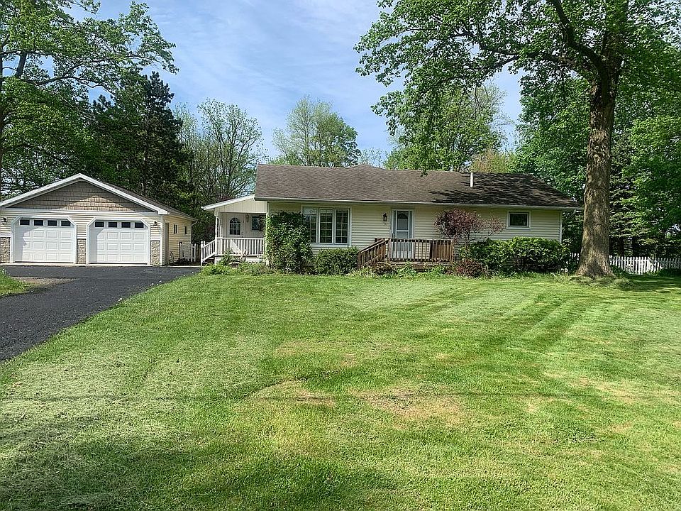 This unique property has 2.7 acres of wooded land and is adjacent to 20 plus acres of farm land. The home is private and easy to maintain. Wait until you see the vaulted pine ceilings in the three season room as you look upon the many amenities including a fire pit, newly painted pole barn, fresh cut lawns and flower gardens. The open floor layout of the home is great for entertaining and staying connected with family and guests. The kitchen is solid maple and has plenty of cabinetry for storage, including a large pantry with slide out drawers. Along with the cabinetry, the kitchen has a modern feel with recessed lighting and stainless steel appliances. The master bedroom has a private full bathroom. This home has a large unfinished basement which includes 5 separate rooms for storage, utility, workshop, laundry and playroom. On demand hot water keeps the energy bill in check. The furnace is 5 years old and the roof is about 15 years old. The oversized 2 car garage is about 10 years old. Wait there's more a large 30'x24' pole barn can be used for horses or other hobbies. Don't let this one of a kind property slip by. Call and schedule your visit today. Renter is responsible for utilities, mowing the lawn and shoveling snow from the driveway. No smoking. Pets are permitted.