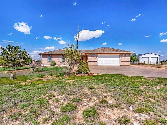Lovely Liberty Point custom home with 4127 square feet sits on a corner lot, has a finished walk-out basement, fenced yard, & 100 foot wide easement behind property and a 20 foot wide easement to the right of the property adding open space and privacy. Great open floor plan with a bright entry that has a skylight and leads the spacious vaulted ceiling great room with a 3-way gas log fireplace open to the living room, dining area and kitchen with ample cabinets w/pullouts, counter space, lighted pantry and breakfast bar area.The laundry room is off the kitchen and has a sink and built-in ironing board and leads to big 690 sq ft 3 car garage (two car garage door) with windows and workspace.and there is a neat office or big storage area off the main level laundry. The nice sized primary has a walk-in closet, newer flooring, a remodeled bath with walk-in shower and freestanding soaker tub and deck access. The main level bedrooms are good sized and 1 has a walk-in closet. There is a large covered deck w/gas hookup for grill, perfect for outdoor enjoyment, mountain & city light views and it overlooks the backyard with raised garden beds. The finished walk-out basement has a 4th bedroom, family room, and game room (could be 5th bedroom) & a full bath. And there is more: a 30'x32 insulated Cleary building w/concrete floor, RV Camper 45 amp service, shelving & 10'x10' doors. Quick access to Pueblo West, Highway 50, & Pueblo Reservoir. Paved road, quick walk to Liberty Point Overlook