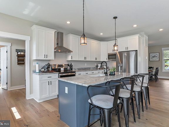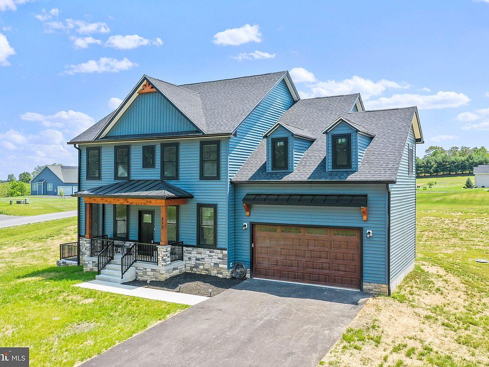 375 Elegant Drive is a rare find! Just shy of 1.5 acres this gem is located on a corner homesite in the sought after Brookside community. 4 bedrooms 3.5 bathrooms. Super modern exterior with deep blue siding, sleek black windows, black porch railing, partial stone, and elite style garage door. Open the front door to be greeted by gorgeous light, wide plank flooring on the entire main level, bedrooms, stairs and hallways. Flex space with double glass pane windows makes for the perfect office, craft room, play room, yoga space or whatever your heart desires. Dining area is open to the living room giving you the perfect view of the stone, gas fireplace. Cabinets galore! Tons of storage space with these white shaker style cabinets accented with black handles, stainless appliances and granite counters. Open shelving and nice wine fridge on the coffee bar area presenting a modern design. Large kitchen island that easily sits 4 with pendants lights above. A full walk-in pantry that will fill all your storage needs! 1/2 bath tucked away by the garage giving you the convenience of use every day but still privacy. Super spacious mudroom area off garage give you the perfect “drop zone”. All of this and we haven’t even made it upstairs! Iron rod, horizontal railing leading upstairs on your wide stair case with the most gorgeous stairwell window providing ample natural light. A full guest suite upstairs with double door closets and a full bath! 2 other large secondary bedrooms with walk-in closets that share a full bath. Both “secondary” bathrooms upstairs have gorgeous white subway tile with granite counter sinks. No laundry “closet” here… enjoy a walk-in laundry room with separate utility tub and cabinets above . Primary bedroom has not one but TWO walk-in closets and bathroom that DREAMS are made of! Hexagon marble look floor tile, free standing tub, two sinks with added cabinet storage, sleek shower with black tile, frameless shower door and a private water closet. Full unfinished basement to use as storage or add to the gorgeousness of this home! Outside rear sodded within fence area, perfect for pets. Water softener and filtration system added!