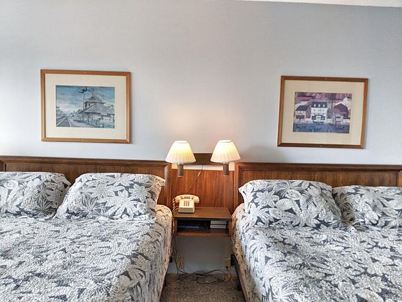 **Winter Rental Available in Cedar Lodge Complex** Available from Oct 1st through May 31st, this condo features vaulted ceilings and 2 queen beds. It is a room with a full bathroom, along with a balcony, mini fridge, microwave, tv, coffee maker, electric heating, and air conditioning. The condo comes fully furnished, and all utilities are included in the rent. Cedar Lodge offers various amenities for tenants, including a gym, laundry room, great room, seasonal pool, fire pit, and game room. Cedar Lodge does not allow for any pets. Please note that a background check and credit check are required, and the costs will be covered by the applicant. Nov-May