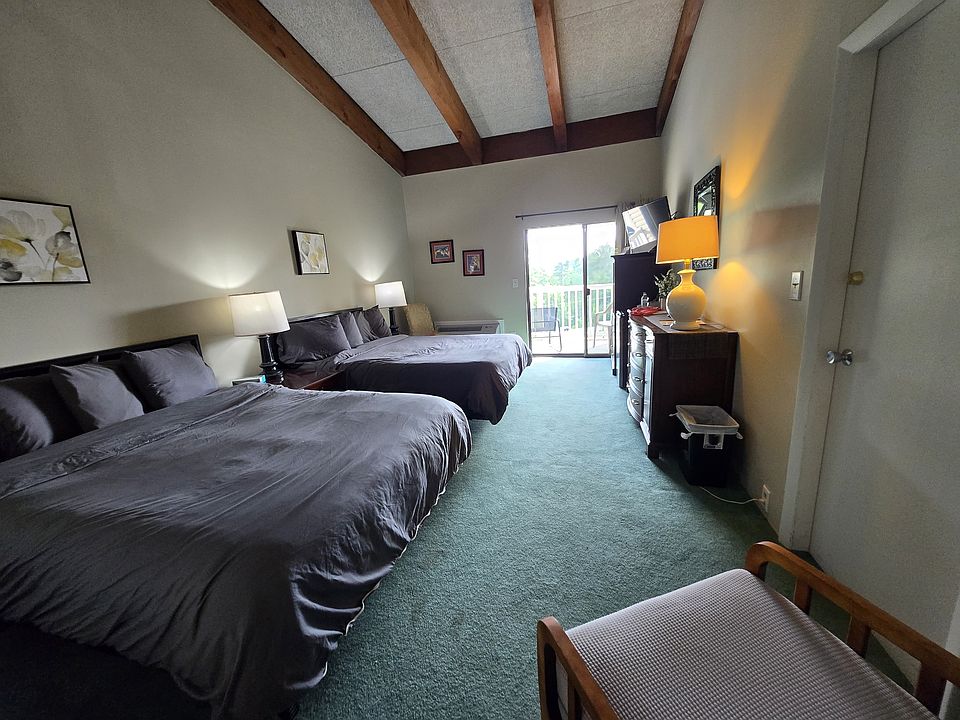 **Winter Rental Available in Cedar Lodge Complex** Available from November 1st through May 31st, this condo features vaulted ceilings and 2 queen beds. It is a room with a full bathroom, along with a balcony, mini fridge, microwave, tv, coffee maker, electric heating, and air conditioning. The condo comes fully furnished, and all utilities are included in the rent. Cedar Lodge offers various amenities for tenants, including a gym, laundry room, great room, seasonal pool, fire pit, and game room. Cedar Lodge does not allow for any pets. Please note that a background check and credit check are required, and the costs will be covered by the applicant. Winter Rental Nov-May