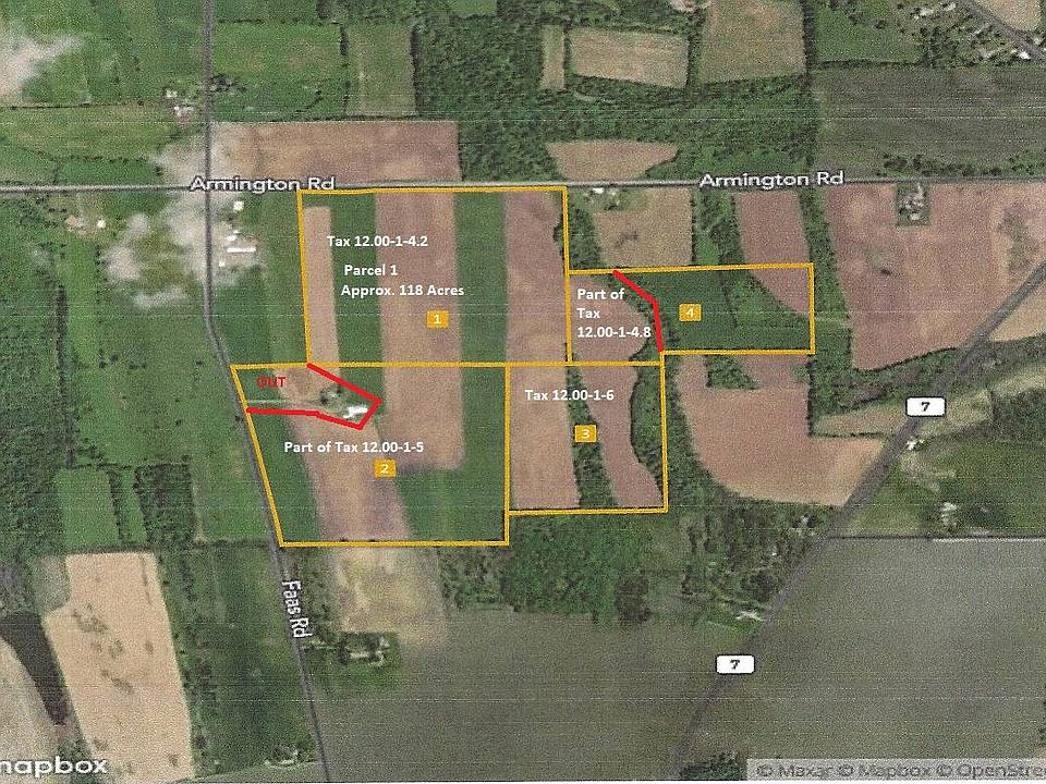 THIS IS AN ONLINE ONLY AUCTION THAT ENDS FEB. 28 AT 11:00 AM. Parcel 1 of 4 is approximately 118 acres of open and wooded land with excellent road frontage just north of the Manchester Thruway exit. Four parcels sell!