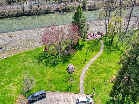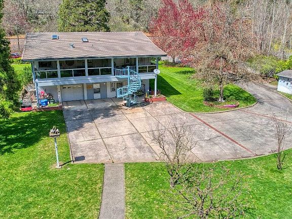 Prime River Front Property. This is more than just a home; it's a lifestyle. Looking for a dream home on the Rogue River? You found it. With 200 feet of river frontage including your own private boat ramp, this charming high quality home offers 3 bedrooms, 3 bathrooms, and 1,958 square feet of living space on a 1.22 acre lot. You'll love the upgraded kitchen with granite counters, hardwood floors, the vaulted ceilings with wood beams. See clear river views from the second story lanai connected by a spiral staircase. The finished 1,254 SqFt daylight basement has its own kitchen, living area, full bath, bedroom, and entrance. Perfect for guests. Overlooking the river you get a large brick patio with built-in BBQ, picnic table and electrical outlets. You'll also have a detached one car garage/boat house and two sheds for extra storage, plus an RV parking pad with hook-ups. This is a rare opportunity to own a piece of serenity on the Rogue River.