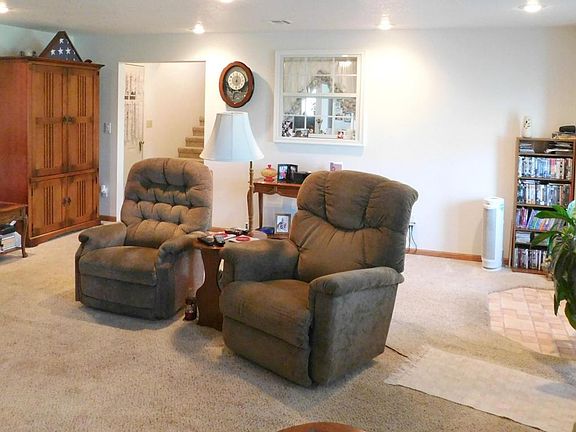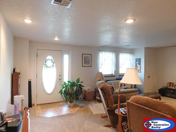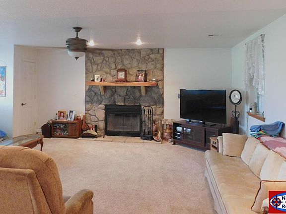 Lovely energy efficient home on bit over a half an acre. This house is an all metal house. Very large open living room with wood burning fireplace. large eat-in kitchen with concrete floors. over sized utility room with wash sink. Full bath on the main floor as well. Upstairs there are two large bedrooms with closet space to match. Master bedroom has a half bath. There are two more rooms off the master. One being used as an office and another for storage. Could be used for non-conforming bedroom. There is an attached RV garage, 2 car garage. Plus a 2 car detached garage and carport. There is 220 hock up. RV hook up out by the carport. Garage door height:12'6''. Garage door width: 12''. Height of garage:16'5''. Covered front porch, Fenced yard. Must see this house. Ave Elec: $184
