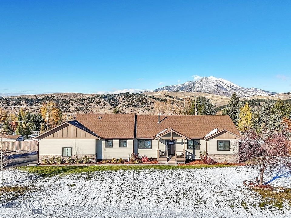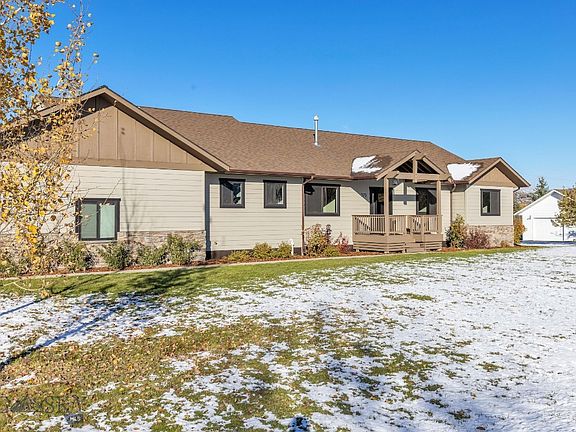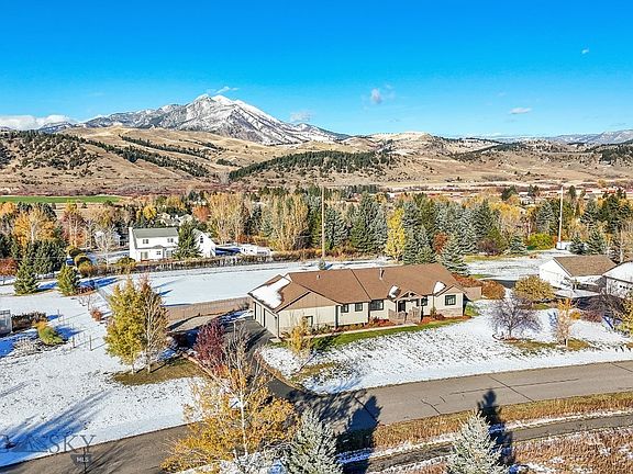 Nestled in one of Bozeman’s hidden gem neighborhoods, this stunning 4-bedroom, 3.5-bath custom home offers an ideal blend of luxury, comfort, and functionality. Situated on a serene 1.17-acre lot, it’s perfect for entertaining and enjoying the natural beauty of the area. The gourmet kitchen is a chef’s dream, featuring a professional-grade 36" stove, 600 CFM hood vent, quartz countertops, a copper sink, and custom cabinetry that provides abundant storage. The oversized island with built-in wine fridge is perfect for gathering, while the open design allows for seamless flow between the kitchen, dining, and living areas. Take in breathtaking views of Mount Baldy and Mount Ellis from nearly every room in the home. The expansive living room boasts soaring vaulted ceilings, a cozy wood stove, and plenty of natural light—creating a warm and inviting space for family and friends to gather. The primary suite is a peaceful retreat, featuring a spacious walk-in closet, private bath, and direct access to the rear deck, where you can enjoy the peaceful outdoors. Two additional bedrooms on the main floor offer ample space and privacy for everyone. The lower level includes a second large suite with a walk-in closet and ensuite bath, making it an ideal space for guests, a private office, or multi-generational living. Additionally, there’s a versatile den or family room that can be customized to suit your needs—perfect for a media room, game room, or home gym. For those with hobbies or storage needs, the finished storage room and canning/hobby room come equipped with custom shelving for organization. The spacious, heated 3-car garage is fully insulated and features a custom workbench, ideal for DIY projects or storing outdoor gear. Outside, the fenced backyard offers plenty of space for outdoor activities, and the back deck and concrete patio are perfect for enjoying summer evenings. Conveniently located just 3.5 miles from Montana State University and downtown Bozeman, this home offers both tranquility and easy access to everything the area has to offer. Don’t miss the chance to make this exceptional property your own!