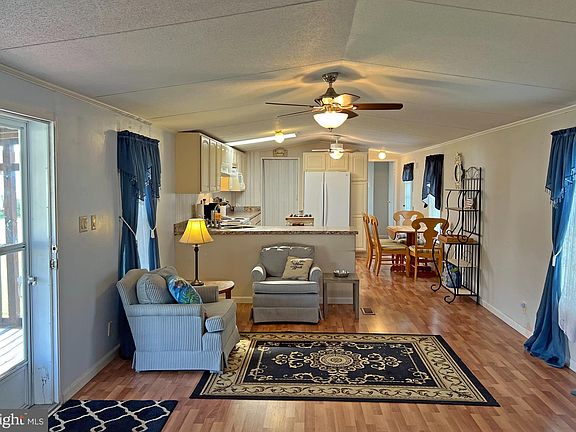 SHOWINGS EXPECTED NEAR THANKSGIVING. The Village of Cool Branch is a gated Hometown America community. Own your home and pay a monthly lot rent of $416.17 (lease renews 01/01/2024 for this home, with a rent adjustment to $445.62/mt.). Lot rent includes water, sewer, road maintenance, and trash/recycle. The other included community amenities are a large in-ground pool with a fountain feature and playgrounds. There is also a large catch-n-release fishing pond, which is fed by Cool Branch and Graham Branch. The pond has a picnic pavilion and two fishing piers (for days when you don’t want to fish from the banks). Golf carts are allowed in this community so you can zip around to visit friends, the pool or the pond. This 2000 Redman is approximately 1,064 sq. ft. (14’x76’) & was remodeled in 2014/2015. The home features laminate flooring in the living room, kitchen & the office/den. The living room adjoins the eat-in kitchen, which has a laundry room closet with a stack washer/dryer & pantry storage shelves. The kitchen has a shiplap-style backsplace, hi-def laminate countertops, soft-close KraftMaid cabinetry, and the appliances including a fridge, electric range, range hood, microwave, and a dishwasher. Split bedroom plan. The main bedroom has a walk-in closet & its own private bath. The other bedroom has easy access to the second full bath in the hall. Covered front porch. Shed. Ask for the $1,500 paint credit! Delaware Electric Cooperative for your electric service (currently “all electric,” but metered LP gas from Sharp Energy is available). Just a short drive to shops in Seaford & Georgetown. And if you feel like enjoying a day in the sand and surf, this home is approximately 30 miles to the famous Rehoboth boardwalk, and just a few miles more to the Lewes public beach. Note: The community owner requires an Application from the Buyer and all occupants 18-years-of-age or older, with acceptance based on: 1)Income Verification; 2)Credit Bureau Score (including debt-to-income ratio); 3)Clean Criminal Background Check. Rentals and subletting are not allowed. Leased-land properties do not qualify for conventional 30-year mortgages, but financing may be available to qualified borrowers from a few Lenders that specialize in installment/chattel loans for manufactured homes on leased land. Buyer will have a 3.75% DMV Doc Fee as part of their closing costs & a settlement agent fee.