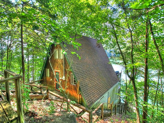 Norris Lakefront Home for $150,000. Wow!! Now that I've got your attention here are the details. Main level offers great room with soaring wood ceilings and deck overlooking the lake, cozy kitchen and all appliances remain, plus a full bath/laundry room. Loft overlooking the great room has lake views and 2 beds. Lower level has huge master bedroom with private deck facing Norris Lake and 1/2 bath. Deep main channel with year around water. Enjoy fishing, boating, and water sports all from your back door on this 34,000 acre pristine lake. Current TVA boat dock permit is for a two level 30' x 15' floating dock although it was never built and current dock is much smaller. Property needs TLC.