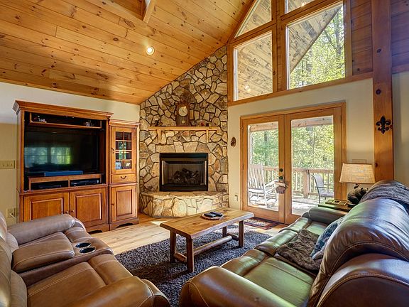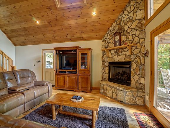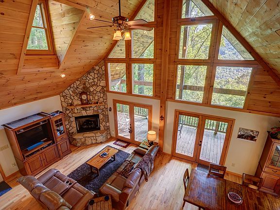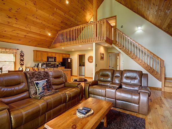 Turnkey Vacation Rental Gem with nice mtn views! This charming 3-bedroom, 2.5-bath cabin is your gateway to relaxation & adventure.Sold fully furnished, it boasts beautiful hardwood floors in the living areas that exude a cozy cabin feel. You'll be captivated by the soaring ceilings adorned w/ tongue & groove wood paneling, & a magnificent wall of windows that floods the living space w/ natural light. The great room features a corner-stacked stone gas-fireplace perfect for Autumn mornings & evenings. The heart of the home is the spacious kitchen, complete w/ ample cabinet & counterspace plus a 5-person breakfast bar that seamlessly connects to the dining room. The main level XL primary bedroom suite features an ensuite bath complete w/ soaking tub, shower & walk-in closet. Upstairs has a small loft that overlooks the living area & 2 guest bedrooms w/ a jack-n-jill bath. The wrap-around covered deck is the perfect place to end the day or jump in the private hot tub for a soak. Cabin is located in a nice community w/ sensible deed restrictions & sits on a private partially-wooded lot w/ easy access. Great opportunity to own a turn-key vacation rental in the heart of the Great Smokys!