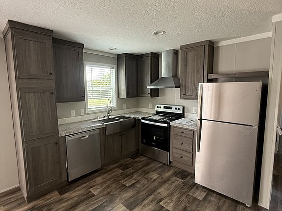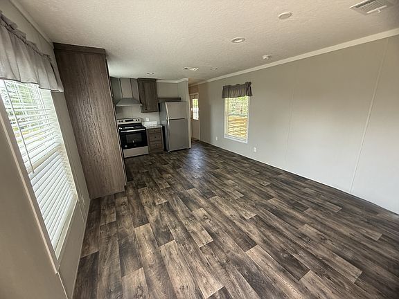 Available now BRAND NEW 2025, 3 bed 2 bath mobile home in small quiet community. All new stainless steel Whirlpool appliances, washer and dryer hookups, farmhouse double kitchen sink with gourmet faucet sprayer. Stainless European style Range hood, Recessed LED lighting fixtures throughout the home, LVP wood flooring throughout, 2" plantation blinds, brand new Heating & Air system with heat pump. Large back deck for relaxing, grilling and entertaining. Home is on a new concrete slab. This home is a certified energy efficient home. Lease Purchase option is available with 10% down. No pets. Small, Quiet community, large shaded lot