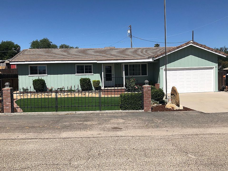 This great 1,136 +/- sf, 3 bedroom, 2.5 BA home is located in a mature neighborhood of Shandon. The lot is just shy of acre, is level and the property has been well taken care of. Artificial grass has been placed in front and back yard for drought tolerant landscaping. Upon entering the home, you will enjoy the welcoming living space. All of the bedrooms are located on one side of the home. The first guest bedroom off of living area has accordion doors that could work as an office. The carpet in all the bedrooms have been replaced this year as well as a new coat of paint in the interior and exterior of the home. Details found in the backyard, such as the water fountain with bridge, are a bonus. A wood burning stove in its own covered area, storage shed, covered area for entertainment all year round make this an awesome set up for those who love to entertain. The garden in the back features fruit trees and planter beds and is ready to grow. Paso Robles is nearby as well as famous wineries, schools, restaurants, highway access and shopping. Come see this fabulous home today!