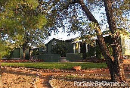 Beautiful property located in Sedona. Situated on 1 acre of land. Mature landscaping surrounds the home, with wonderful trees and pathways, plus a fantastic water feature in the front yard. Home is on a stem wall. Detached 1 car garage. Home is move-in-ready with a new furnace and central air heatpump. Vaulted ceiling throughout; all appliances including dishwasher,washer and dryer in the utility room. It is a manufactured home, permanentely situated on a foundation wall. There are two fenced in areas on the property; one for a garden and another for pets. Automatic irrigation system for garden, trees, landscape and lawn area.