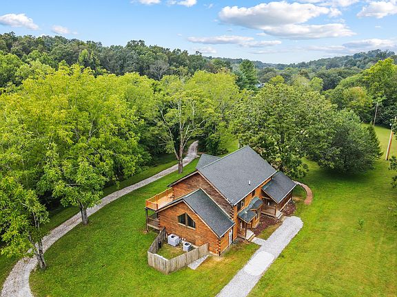 Custom log home on 10 Secluded Acres* Only 45 minutes to downtown Nashville* 2 story great room opens to center island kitchen* Stone Fireplace* Main level owner's suite* Jacuzzi + walk-in closet* Wrap porch w/ vaulted dining area & ceiling fan* Inviting oversized deck with stone chimney* Completely Fenced (except thru creek) w/ electric gate & security cameras* Creek* 48' x 36' Barn with heated & cooled workshop* RV carport pad* Underground utilities* Nothing compares!